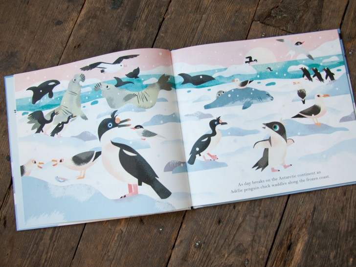 The One Day on Our Blue Planet series by Ella Bailey is a new set of children’s books focused on the way our young animal friends spend a day. This time we head to the biting cold of Antarctica to meet a curious penguin chick!