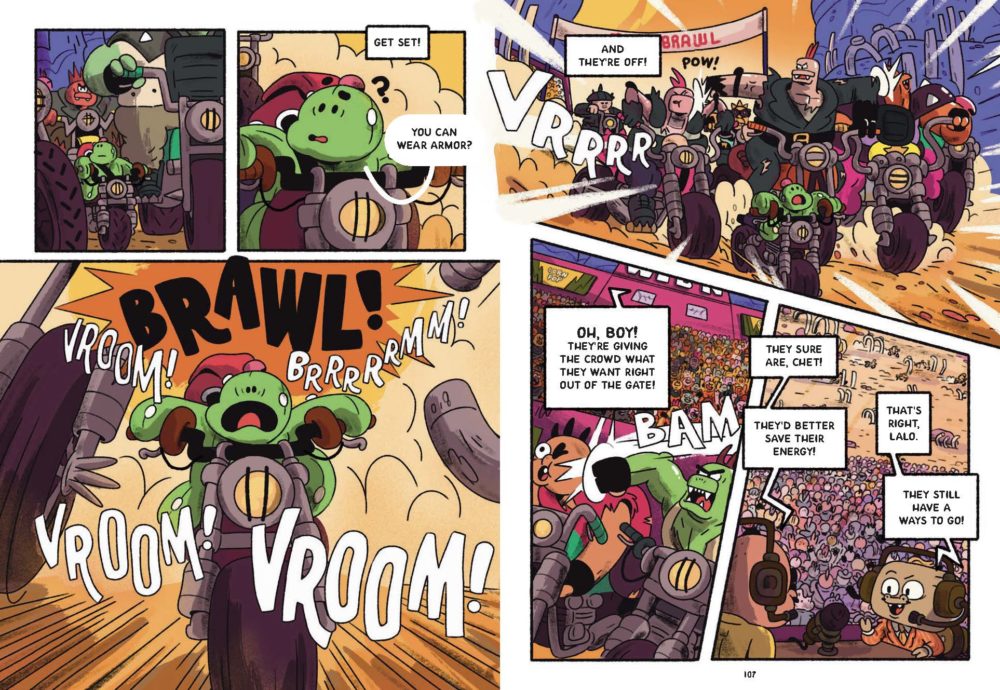 Cactus Kid has exiled himself to the Neverending Desert to master magic and prove to his all-powerful father that he is the best wizard alive. All he needs is a piece of star rock to supercharge his magic, but he’s not the only one after it. Caught in the crossfire between rival gangs of the Clams and the Shells, he must compete in the epic and death-defying moto-brawl race to get a single slice of the star rock. Meanwhile, a shadowy lizard figure is scouring the desert. Armed with a mystical compass, this bounty hunter is searching for any magic he can get his hands on…
