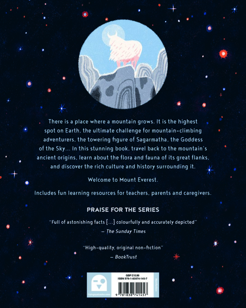 Mount Everest is undoubtedly one of the most famous mountains on Earth. Hundreds of people clamber to its summit every year, following in Edmund Hillary and Tenzing Norgay’s footsteps… but there is so much more to this mountain than the people who climb it. With sumptuous and stylish illustrations by Lisk Feng, this dynamic book reveals the great mountain’s ancient origins, the flora and fauna that thrive upon its great flanks, and the rich mythology of Sagarmatha, the Goddess of the Sky.