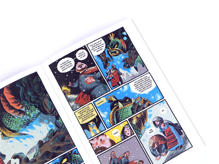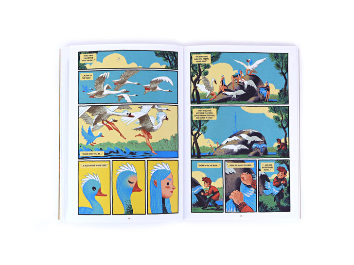 “Gamayun, the magical human-faced bird of Slavic mythology, narrates this vibrant and luxurious graphic novel for younger readers. Alexander Utkin’s blue, orange and yellow-dominated visuals are both painterly and modern, and the story is magical and full of the strangeness of the original fairytale that inspired it.” — The Book Trust on The King of Birds