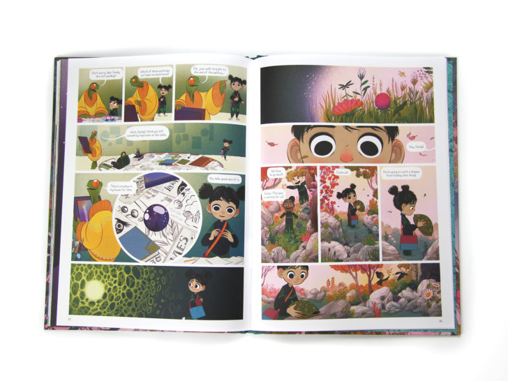 On a school field trip to the river, Sandy wanders away from her classmates and discovers an empty turtle shell. Peeking through the dark hole, she suddenly finds herself within a magical new dimension. Filled with sculptures, paintings and books, the turtle’s shell is a museum of the natural world. But one painting is incomplete, and the turtle needs Sandy’s help to finish it…