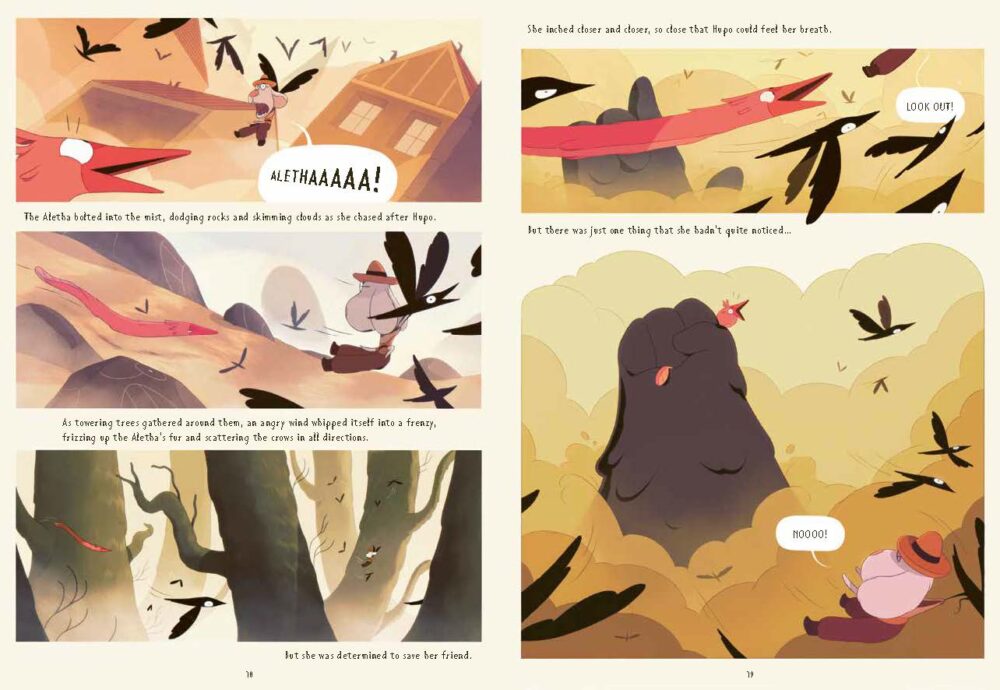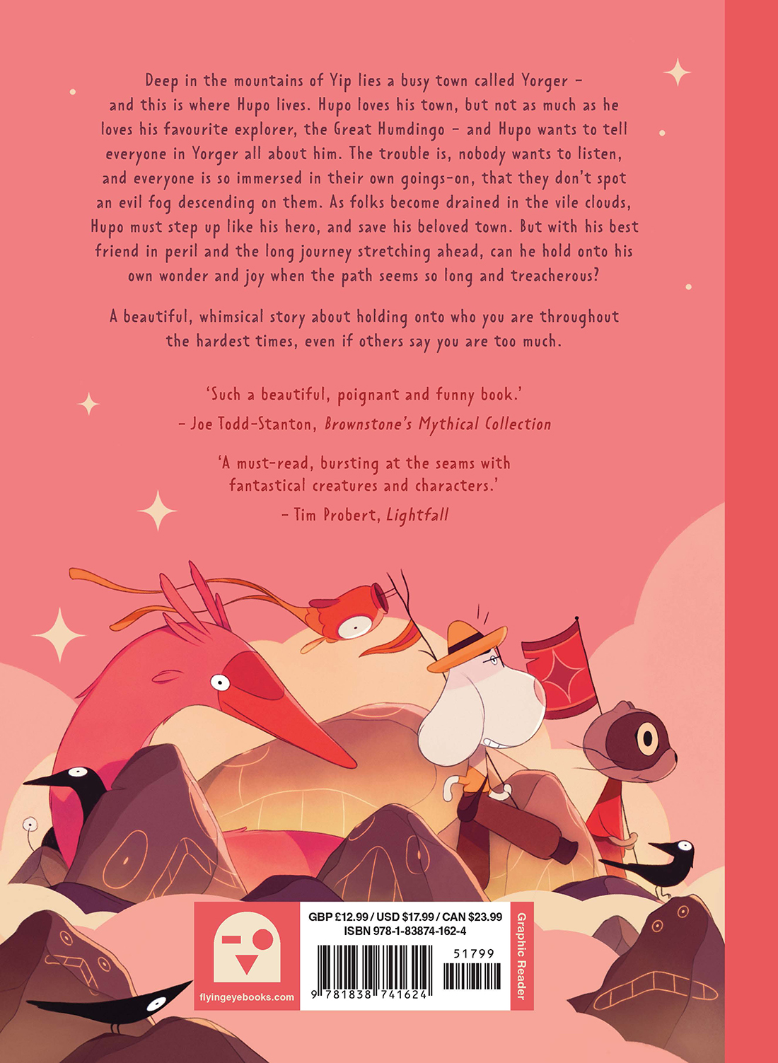 Hupo and the Aletha love to amble through the bustling streets of their city, talking to shopkeepers and recounting tales of their favourite adventurer, the Great Humdingo —much to the annoyance of everyone around them. But when mysterious, zombifying mists creep into town and the Aletha is captured by a sinister force in the mountains, Hupo’s on a mission to set everything to rights… But can he hold onto who he is when everything around him seems so terrible?