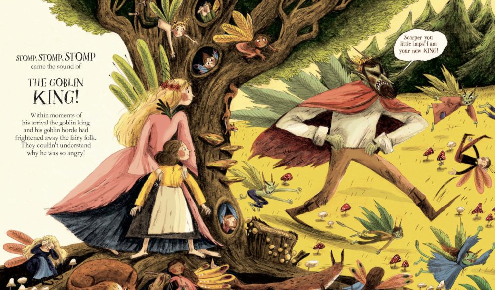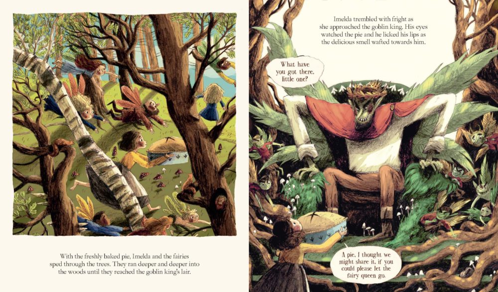 Far away behind the hills a girl called Imelda lives beside a fairy forest. Every day she ventures into the forest to play with her fairy friends. But within the deepest, darkest depths of the trees lives the worst creature of all – the goblin king! When he kidnaps the Fairy Queen, the fairies call upon Imelda to help. Soon she has a cunning plan to turn the Goblin King into a worm and rid the forest of him for good…