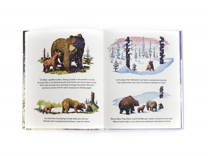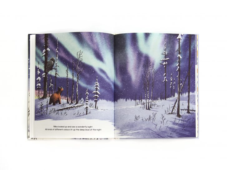 Mika the little bear loves to run and play all about the forest, but he soon learns that he is meant to spend the long, cold winter months hibernating with his mother and father. When the old owl tells Mika about the Northern Lights that appear every winter, he can’t stand the thought of missing something so beautiful, and so he sets out on a secret, snowy adventure to find them!