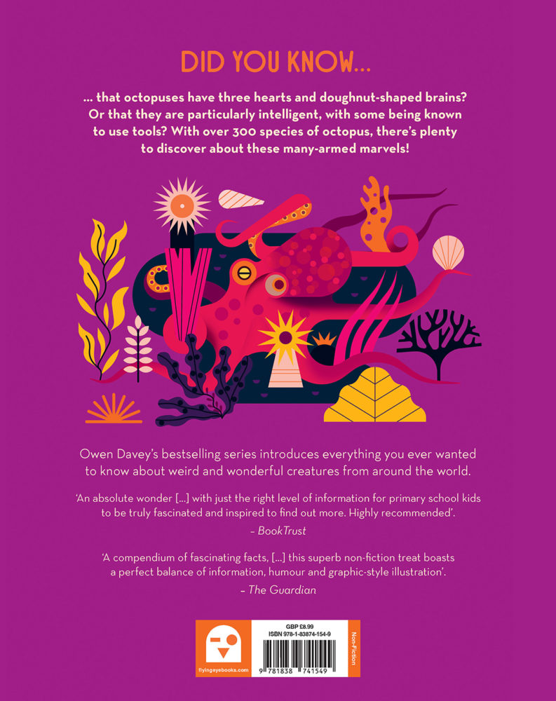 Dive into this fascinating illustrated guide all about the aliens of the deep. From the truly terrifying giant Pacific octopus to the inventive common octopus, find out where they live, what they eat and how we can protect them. The latest entry in acclaimed illustrator Owen Davey’s popular “About Animals” series, featuring his signature minimalist art style with colourful, design-oriented layouts–Obsessive About Octopuses is sure to delight kids as well as adult cephalopod fans.